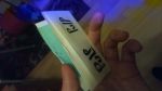 It consists of a small blue flyer for the gig and a sheet of A4 paper folded three times. The A4 paper contains the handwritten word 'Pulp' in marker pen on each of its squares (the squares being made by the folds). The blue flyer is then stapled inside the folded A4 paper and can only be seen if you break the staple open.