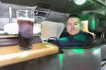 "Former Pulp drummer Nick Banks has unveiled one of the first taxi-pubs, which is complete with a BAR on the front passenger's seat. See Ross Parry story RPYTAXI: The 53-year-old with the help of two friends has kitted out the interior with three working pumps which serve lager, bitter or cider. The father-of-two, who lives in Sheffield, South Yorks., has named the taxi The Drinks Cab-innit and is also equipped with a disco ball, curtains and three pumps - as well as a bottle bar. But obviously, the driver never drinks when getting behind the wheel. The rock legend can be seen roaming the streets of his home city in the bright coloured taxi dubbed The Pink Torpedo. Sadly, the taxi won't be giving you a lift to the pub any time soon, as it doesnt take passengers and will be scrapped after the rally. Nick says the pumps only work when hooked up to beer lines at a real pub due to having to stock up on gas bottles."