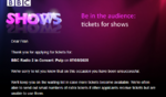 For what it's worth, I'm thinking of taking a train down to London and hanging around Broadcasting House on the off-chance... (I've just been brutally, er, 'cobbed' so I've not got much else to do at the moment!)