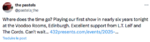 HoltbyCity wrote:Bookmark wrote:HoltbyCity wrote:Nothing new new. But an old unreleased one and a Jam cover. Baby Honey was absolutely incredible was it Ballad of two elms ? incredible song I'm not sure to be honest, I didn't know the original. Seems likely though. I was hoping someone would put something on Setlist